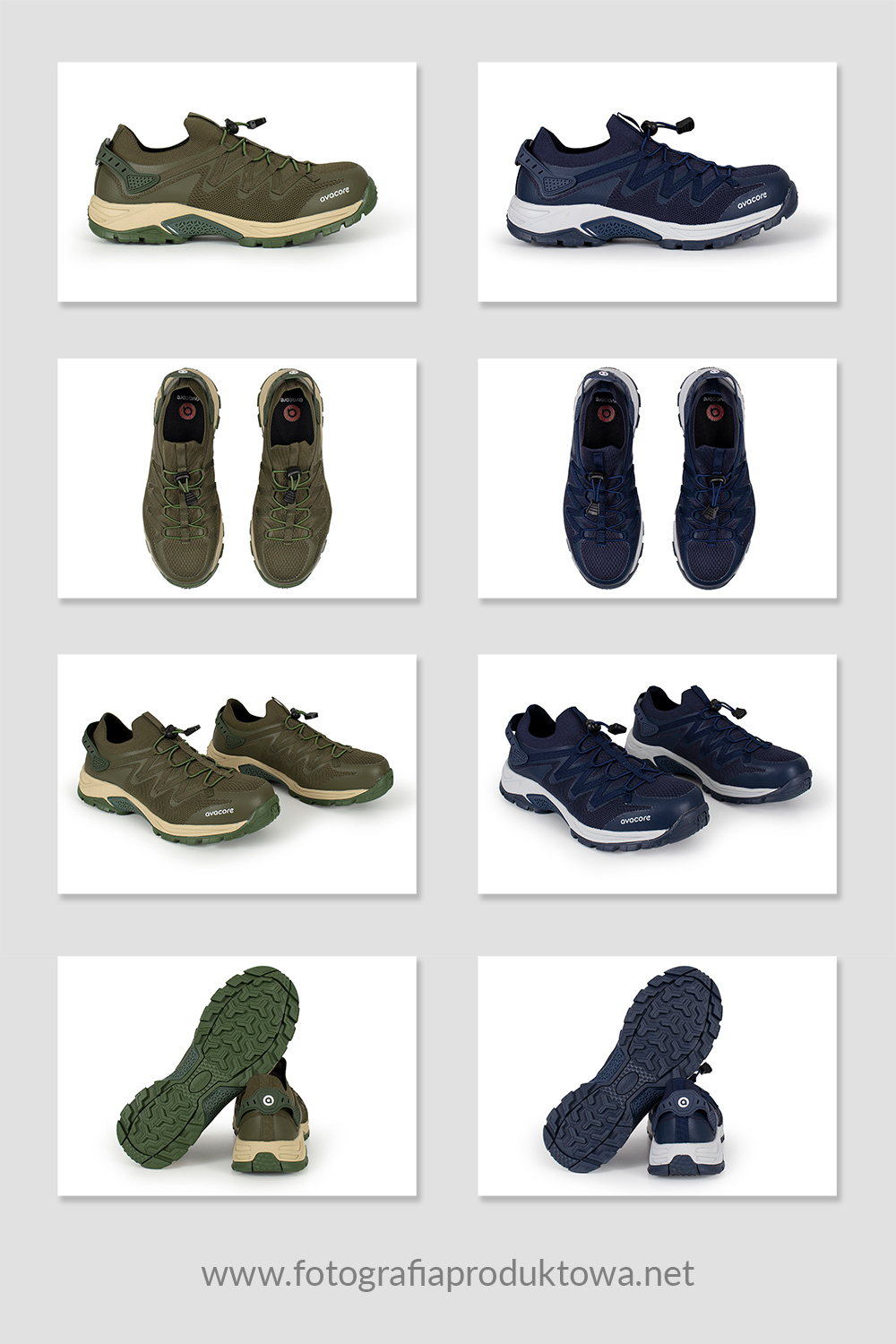 - buty (na białym tle, z cieniem lub odbiciem, w różnych ujęciach),
